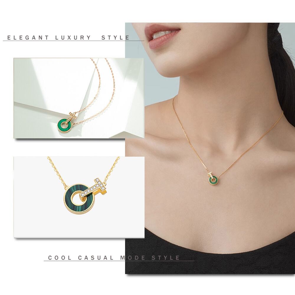 ネックレス レディース K18 18金 イエローゴールド 加工 天然マラカイト 孔雀石 CZ ダイヤモンド ネックレス オープンワーク シルバー 925 天然石 Tネックレス T字ネックレス スマイルネックレス 金属アレルギー対応 | Angeling