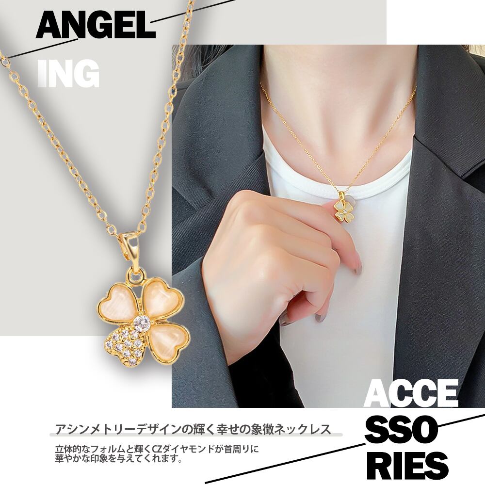 ネックレス レディース クローバーモチーフ 四つ葉のクローバー ネックレス ゴールド うさぎ クローバー ネックレス サージカルステンレス ブランド ネックレス 誕生日 プレゼント 金属アレルギー | Angeling