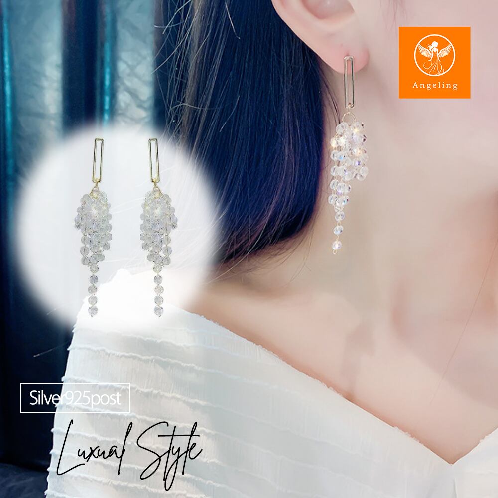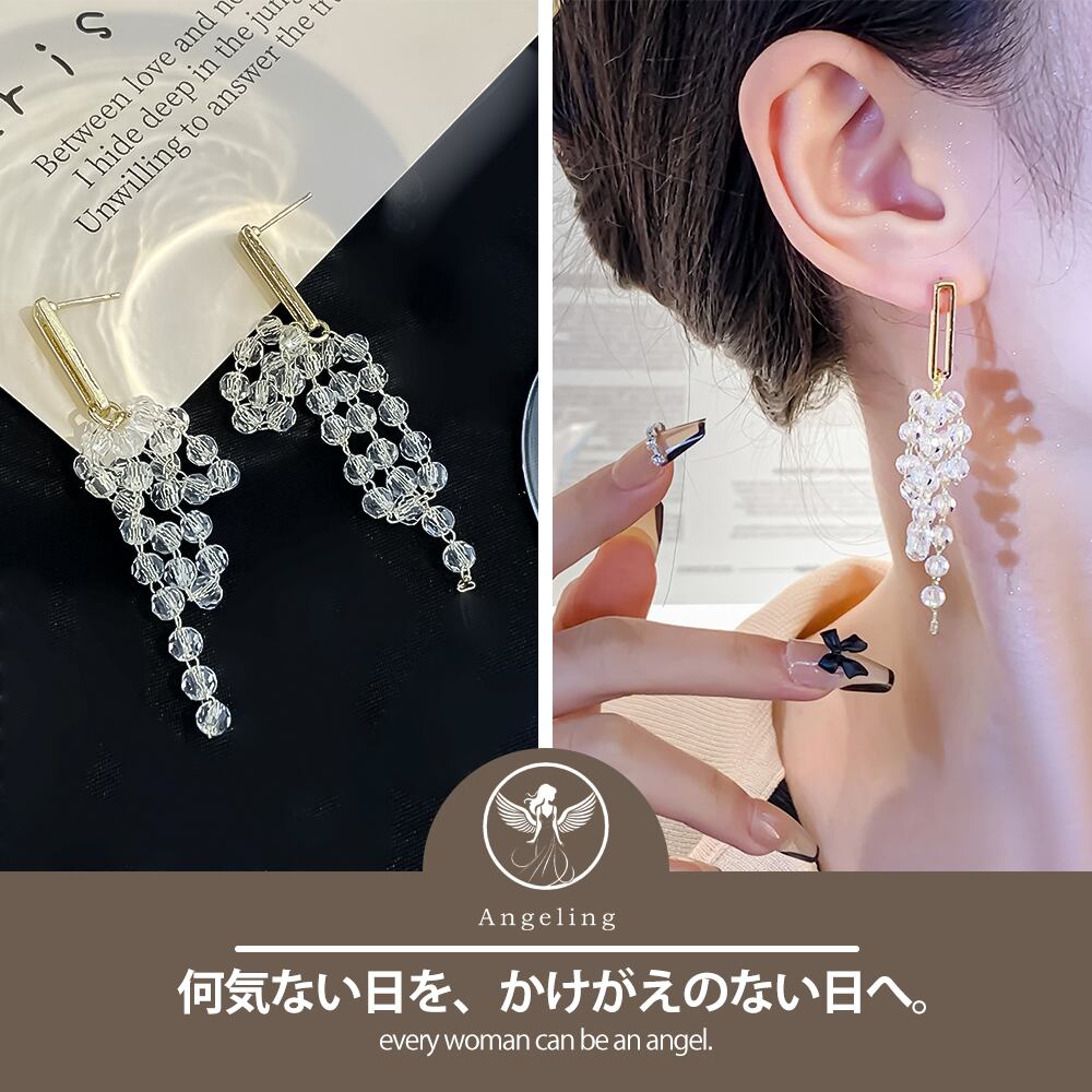 ピアス レディース 揺れるピアス トレンドピアス クリスタルビーズ ゴールド 真鍮 SV925post K18コーティング ブランド 揺れるピアス 揺れ動くピアス 誕生日 プレゼント 金属アレルギー | Angeling