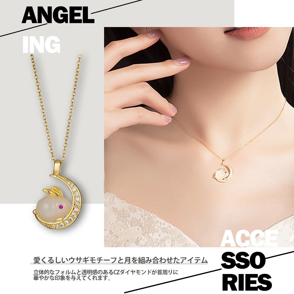 ネックレス レディース ウサギモチーフ うさぎ 兎 ウサギ ネックレス 月ウサギ ムーン 月 ネックレス ゴールド サージカルステンレス K18コーティング ブランド ネックレス 誕生日 プレゼント 金属アレルギー | Angeling