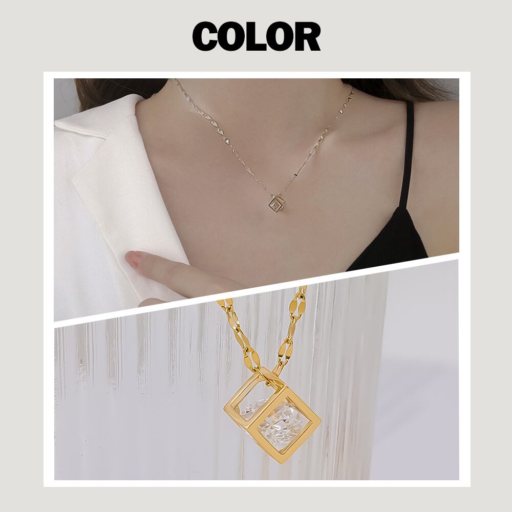 ネックレス レディース キューブモチーフ 四角 CZダイヤモンド キューブ ネックレス ダンシングストーン ゴールド サージカルステンレス K18コーティング ブランド ネックレス 誕生日 プレゼント 金属アレルギー | Angeling