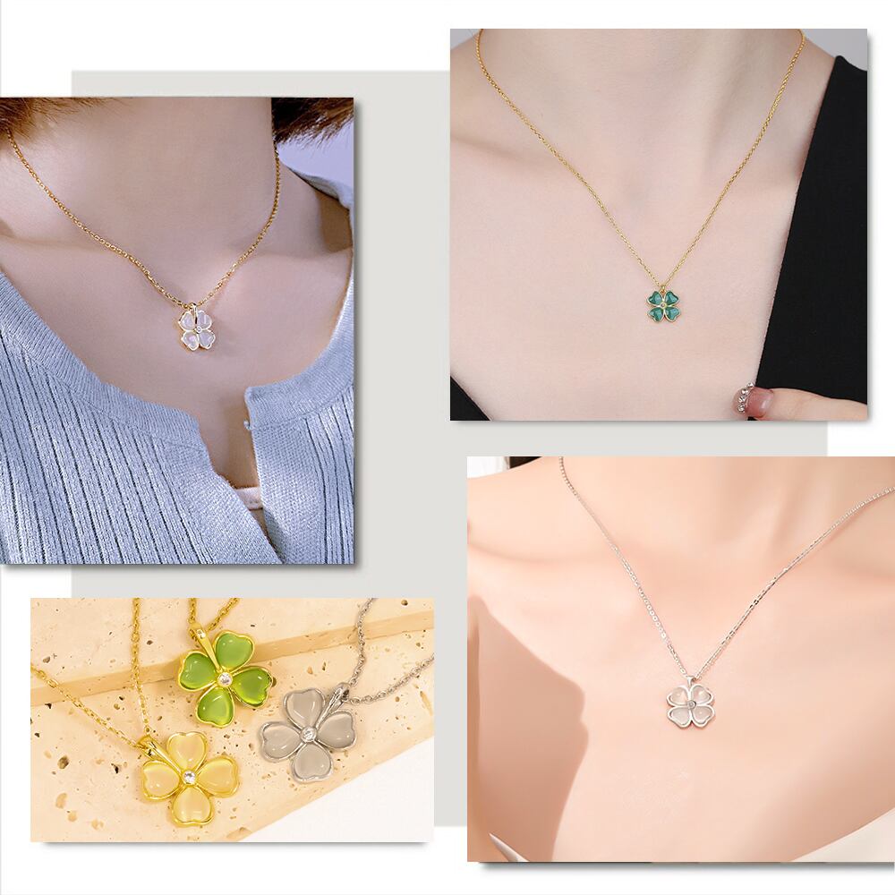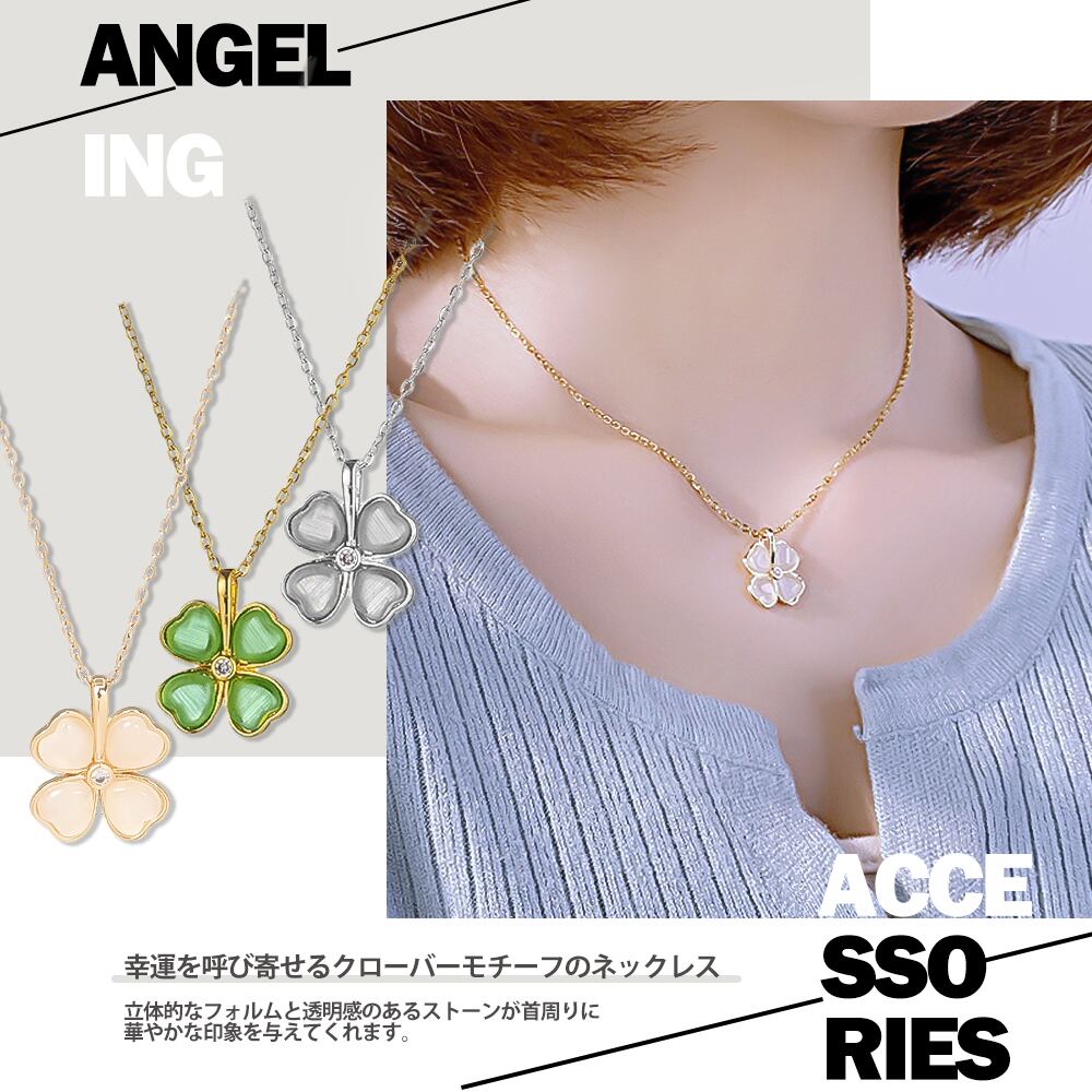 ネックレス レディース クローバーモチーフ クローバーネックレス ゴールド シルバー シャンパントパーズ K18コーティング サージカルステンレス ブランド ネックレス 誕生日 プレゼント 金属アレルギー | Angeling