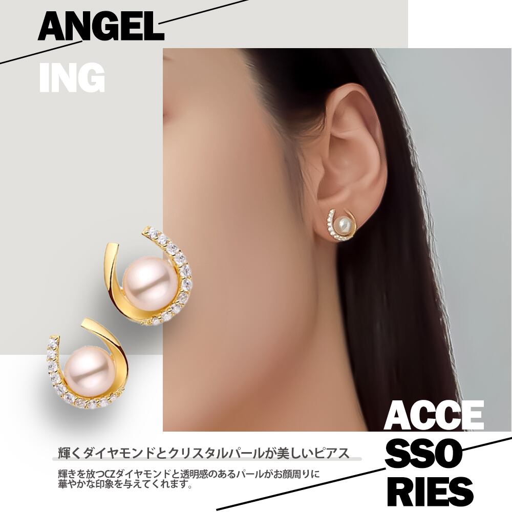 一粒パールピアス レディース K18 18金 イエローゴールド 加工 スワロフスキー パール CZ ダイヤモンド アシンメトリー ピアス ツイストライン シルバー 925 誕生日 プレゼント 結婚記念日 女性 彼女 妻 | Angeling