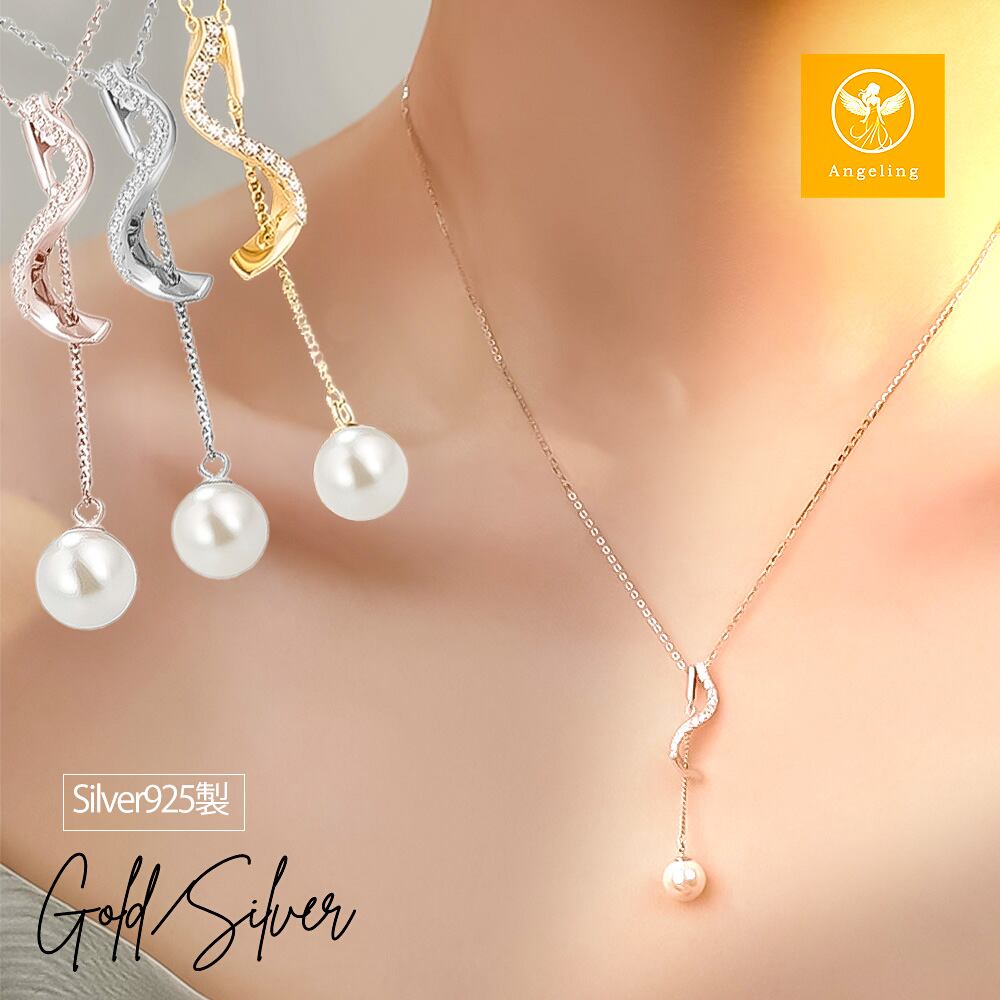 揺れるネックレス レディース K18 18金 イエローゴールド ローズゴールド 加工 スワロフスキー パール CZ ダイヤモンド ネックレス シルバー 925 ブランド 誕生日 プレゼント 結婚記念日 女性 彼女 | Angeling