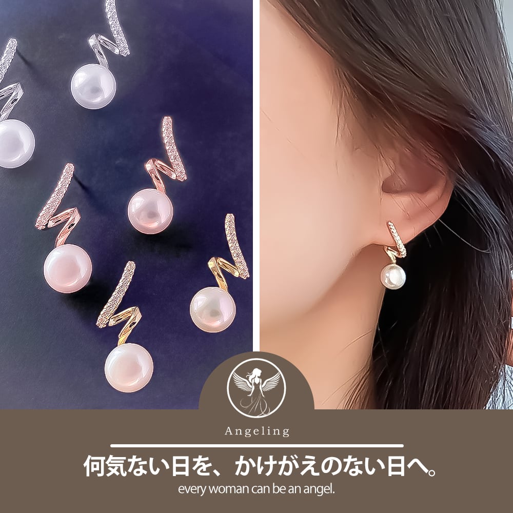 一粒パールピアス レディース K18 18金 イエローゴールド 加工 スワロフスキー パール CZ ダイヤモンド ウェーブライン ピアス ツイストライン シルバー 925 誕生日 プレゼント 結婚記念日 女性 彼女 妻 嫁 | Angeling