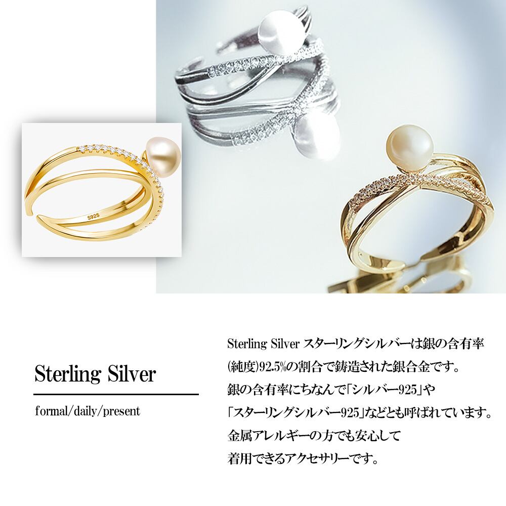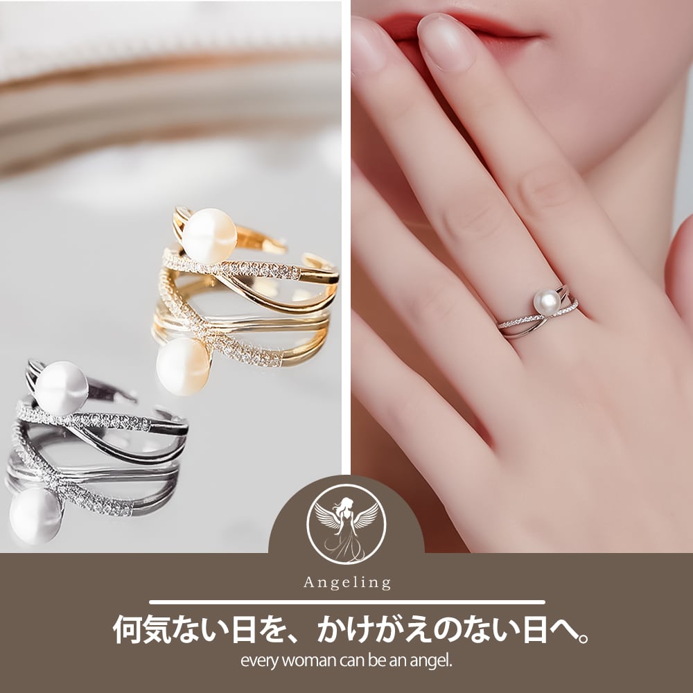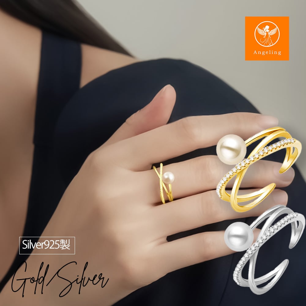 一粒パールリング レディース K18 18金 イエローゴールド 加工 スワロフスキー パール CZ ダイヤモンド アシンメトリー リング クロスライン シルバー 925 誕生日 プレゼント 結婚記念日 妻 嫁 金属アレルギー | Angeling