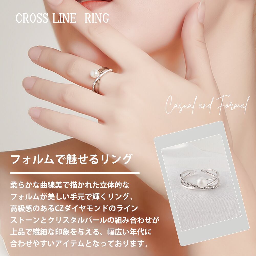 一粒パールリング レディース K18 18金 イエローゴールド 加工 スワロフスキー パール CZ ダイヤモンド アシンメトリー リング クロスライン シルバー 925 誕生日 プレゼント 結婚記念日 妻 嫁 金属アレルギー
